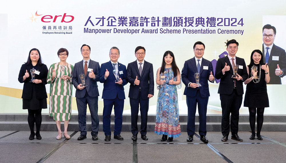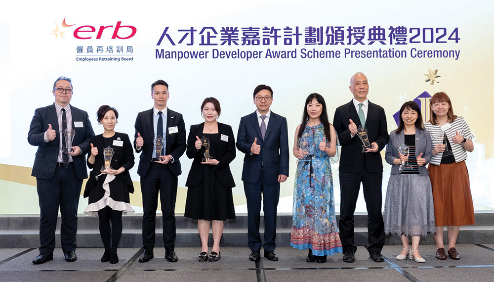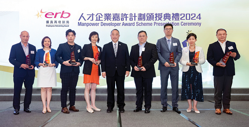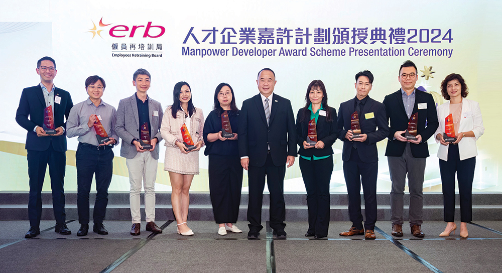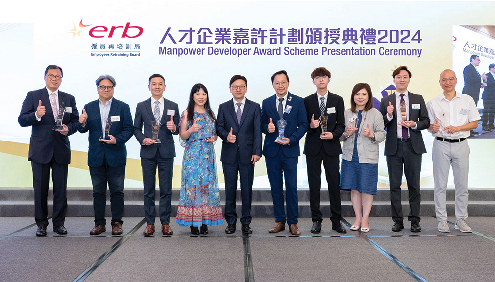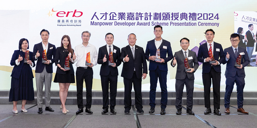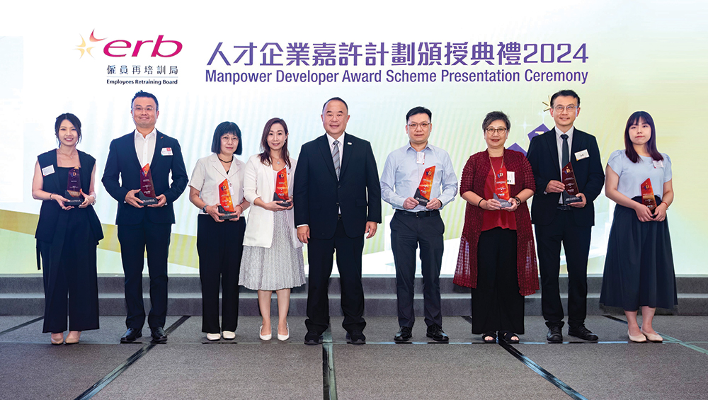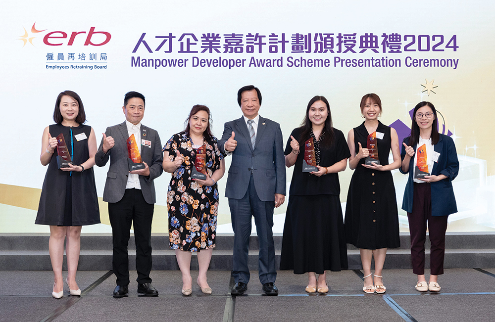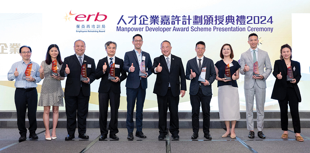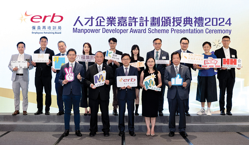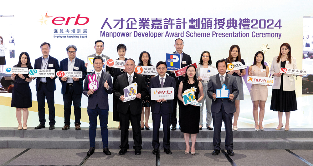 The “ERB Manpower Developer Award Scheme” Presentation Ceremony was successfully held on 6 August 2024. The ceremony officiated by Mr Chris Sun Yuk-han, JP, Secretary for Labour and Welfare, Ms Alice Lau Yim, JP, Permanent Secretary for Labour and Welfare, Mr Yu Pang-chun, GBS, JP, Chairman of ERB, Professor Simon Wong Kit-lung, BBS, JP, Vice-Chairman of ERB and Mr Byron Ng Kwok-keung, BBS, Executive Director of ERB, was well-attended by around 300 senior executives of MDs and guests. On the occasion, awards were given to a new cohort of around 80 MDs and 25 Grand Prize Awardees in recognition of their dedication to talent cultivation and unswerving support to the ERB training courses and collaboration projects.