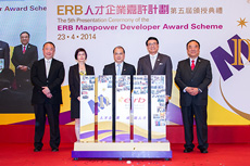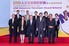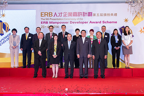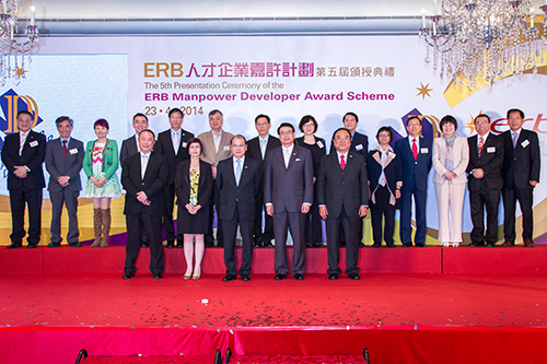 「 ERB人才企業嘉許計劃 」第五屆頒授典禮於2014年4月23日圓滿舉行。勞工及福利局局長張建宗先生, GBS, JP、常任秘書長譚贛蘭女士, JP、ERB主席梁永祥先生, BBS, JP、副主席余鵬春先生, SBS, JP及行政總監吳家光先生, BBS擔任主禮嘉賓,近400名政府、僱主、商會、專業團體、培訓機構代表出席頒授典禮,共同見證「人才企業」的卓越成就。