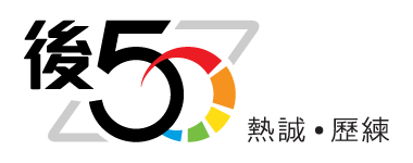 「後50」標誌以5種奪目的顏色及動感設計,帶出「後50」充滿熱誠,有歷練,不斷向前的訊息。「後50」潛能無限,他們積極學習,投入工作,發放耀眼光芒,是寶貴的人力資源。